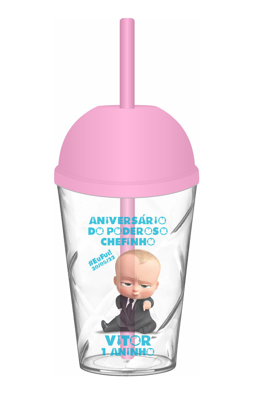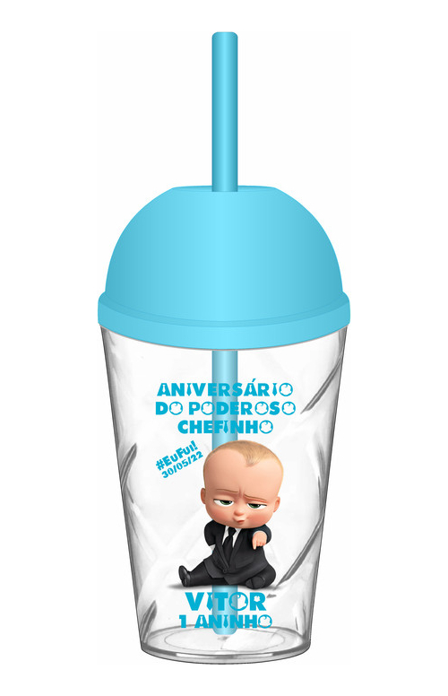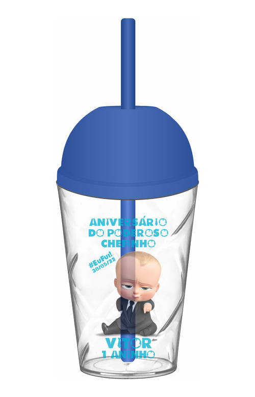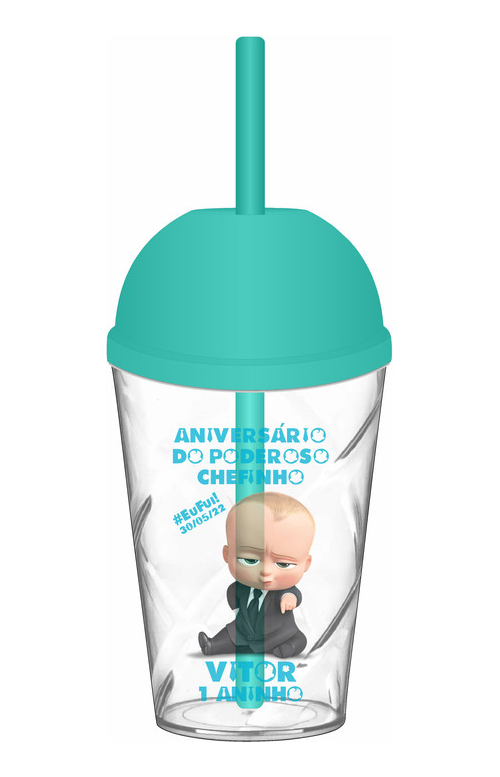 Logo após a compra informe os dados para personalização como: Nome, Idade e Data. Informe também a cor da tampa/canudo desejado (tampas e canudos serão da mesma cor e múltiplo 5 unidades por cor). Caso não informe a cor da tampa enviaremos a cor da imagem principal do anúncio (primeira imagem).